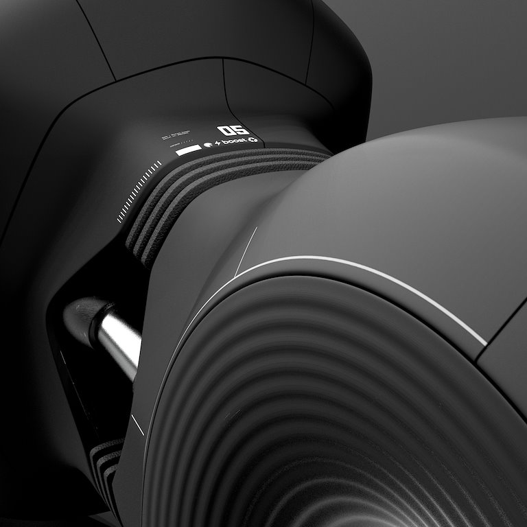 The goal was to simplify the original design language and create a more tech led expression. The integration of mechanical elements and a reduction of visible parts lead to a surface language that has a clean but bold expression. Patterns and controlled split lines create just enough detail to give the right amount of focus and definition to the overall volume.